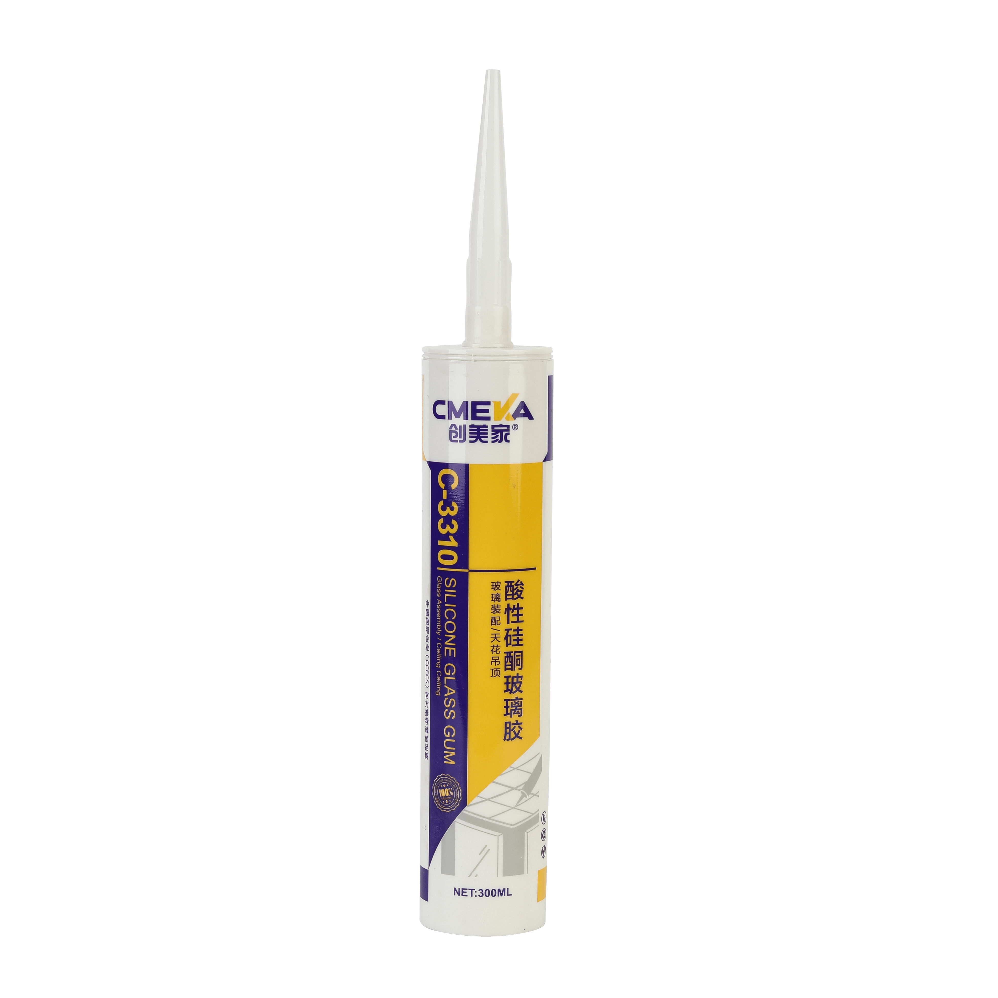 1 創(chuàng)美家C-3310 酸性硅酮玻璃膠單組份、醋酸型、室溫固化硅酮玻璃膠,使用方便。